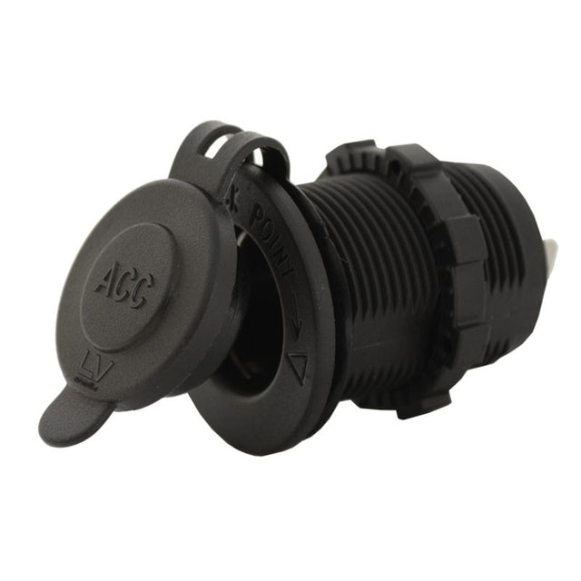 Reliable flush mount DC accessory socket with cover, ideal for 12V or 24V power systems. Designed without backlighting, this simple and durable socket is perfect for 4WDs, caravans, RVs, and marine applications.