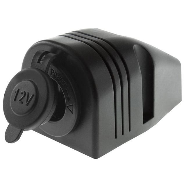 This surface mount DC accessory socket is ideal for powering 12V or 24V devices in 4x4s, caravans, boats, and RVs. It features a protective cover and a blue LED backlight for visibility in low-light conditions.