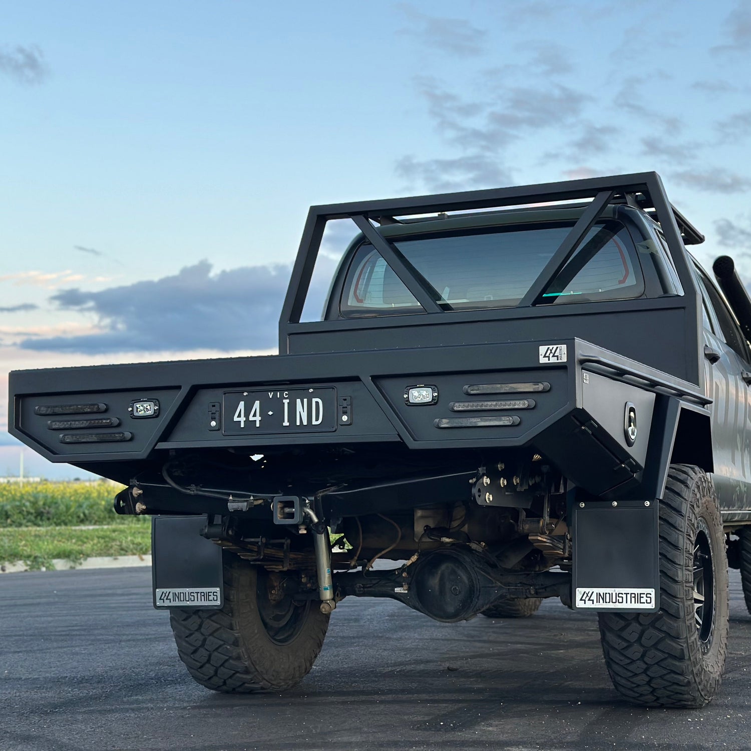 Custom made tailboard laser cut plates for 1800mm wide tray, supplied raw so you can build your own tray however you like. Shapes are made to suit our under tray tapered toolboxes.